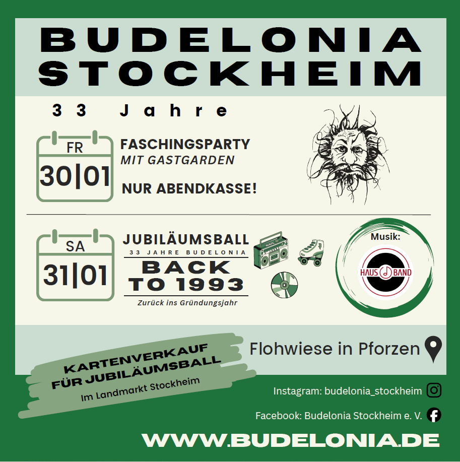đ Kommt und feiert mit uns 33 Jahre Budelonia Stockheim! đ